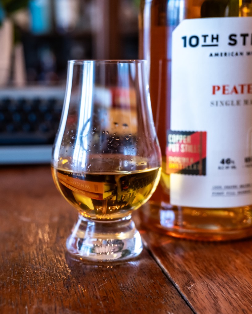That whiskey—or, as they prefer to be called, whisky—is the Peated Single Malt American Whisky from 10th Street Distillery. As someone who was introduced to whisky through the salty spirits of Islay, Scotland, the idea of a peated American whisky is enticing. So enticing, in fact, that I ordered this bottle with little-to-no research.