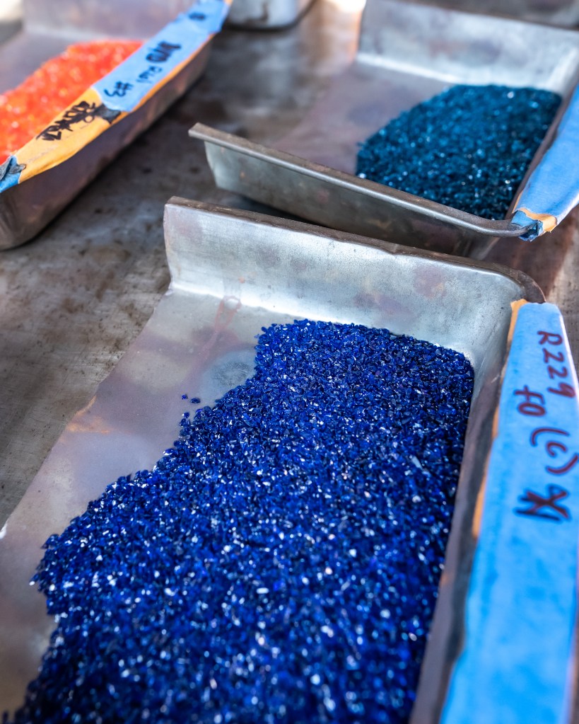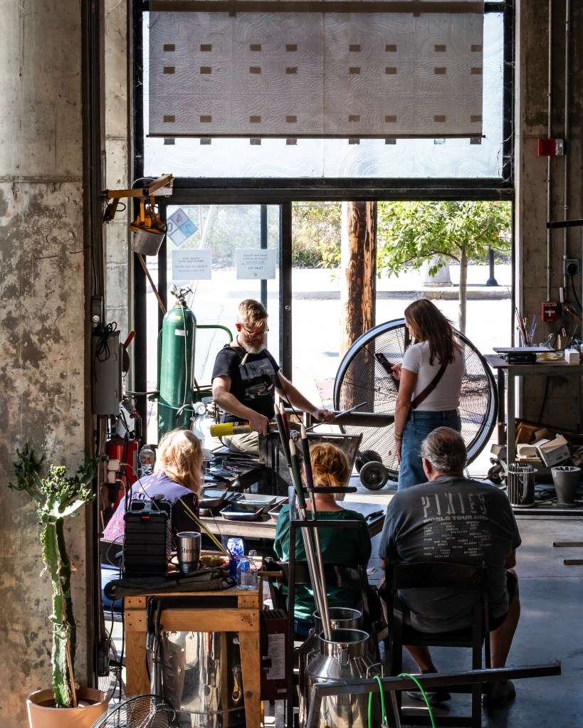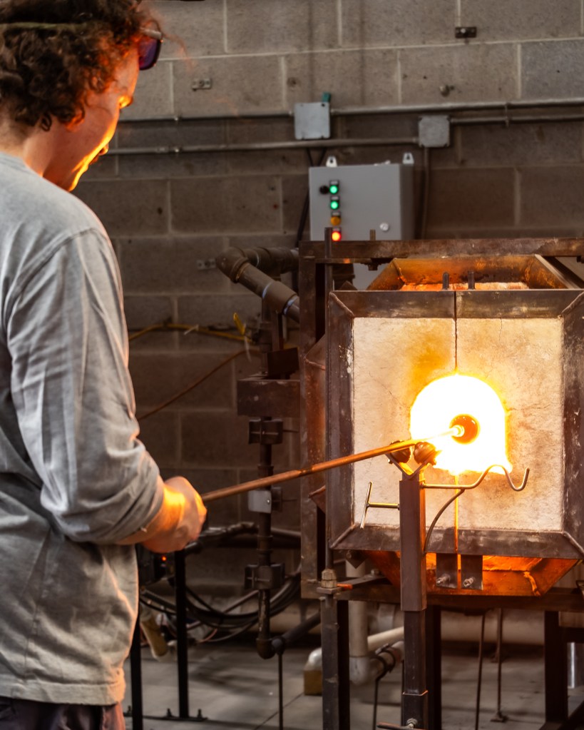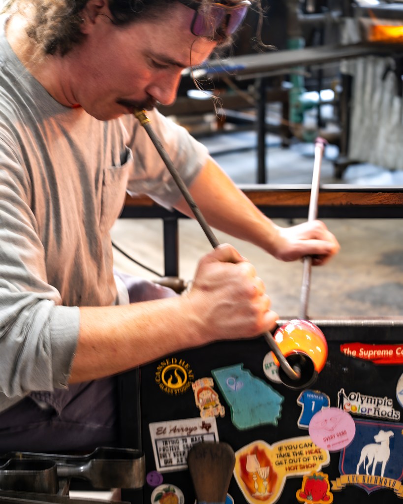After choosing your project and your colors, you’re handed a paper bag notated with your selections scribbled Sharpie ink. As informal as it may be, that bag is important: when your turn comes, you must pass it along to the glassblower who’ll bring your creation to life.